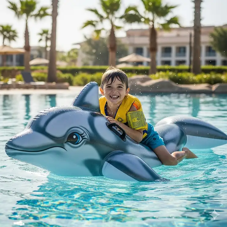 Older children and teenagers (ages 7-15) can safely enjoy larger inflatable dolphin pool float models with proper instruction and supervision. Emphasize the importance of mounting and dismounting techniques that maintain balance and prevent falls. Teach users to approach floats from the side rather than attempting to climb over the back or front.